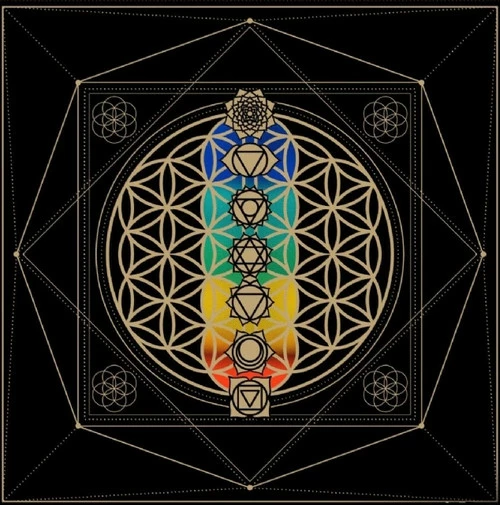 Altar Cloth – Chakras with Flower of Life 90x 90cm