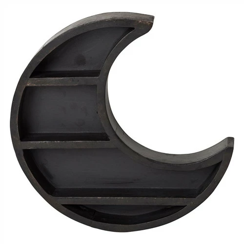 Wooden wall shelf in the shape of a crescent moon ready to hold crystals and sacred talismans etc.