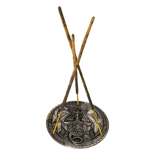 Made from Aluminium with three holes for sticks – features dragon holding an inverted pentagram.