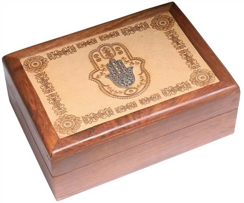 Smooth polished sides and a deep rich tone complete the laser cut design box with a feature metal charm to finish this wooden box. Velvet lined, so very suitable for storing jewellery, precious stones, crystals or tarot cards etc.