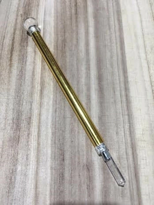 Simple wand with gold metal shaft and clear quartz end points – 19cm