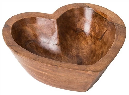 Wooden carved bowl in the shape of a heart ready to hold crystals, herbs and sacred talismans etc.
