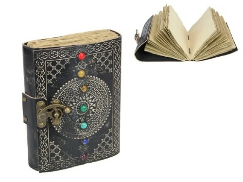 Leather Journal Mandala 7 Chakra Black 18x13cm