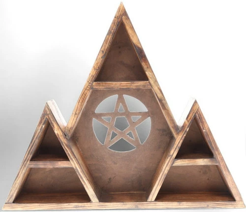 A wall panel or shelf featuring a cut out pentagram shape in the centre