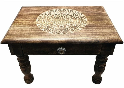 This adorable Table would makes for a great feature altar, or crystal display with grid pattern carved in..