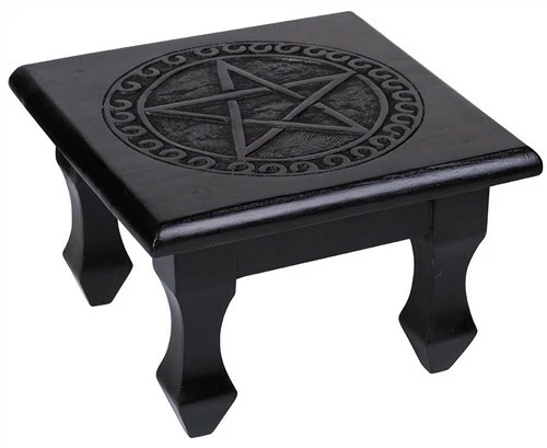 This exquisite altar table is gorgeous, beautifully displaying a carved pentagram symbol to make the perfect foundation for your ritual space