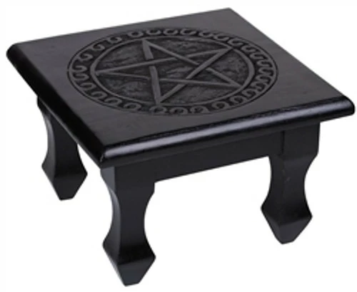 This exquisite altar table is gorgeous, beautifully displaying a carved pentagram symbol to make the perfect foundation for your ritual space