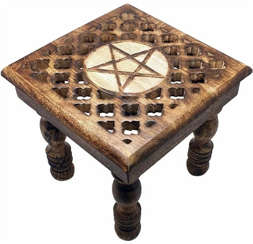 This adorable Square Table would makes for a great feature altar, or crystal / herb display with grid pattern carved in..