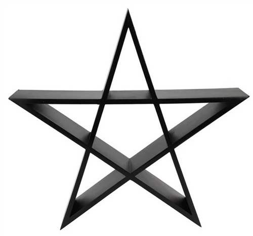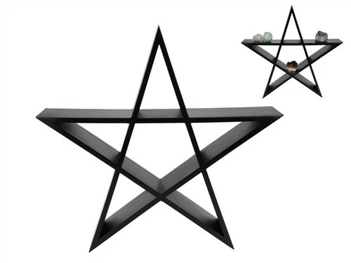 Wooden wall shelf in the shape of a pentagram ready to hold crystals and sacred talismans etc.