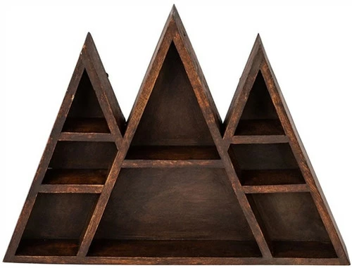 Wooden wall shelf in the shape of pyramids ready to hold crystals and sacred talismans etc.