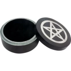 Pentagram Moon Phases Incense Plate – Soapstone With Silver Inlay