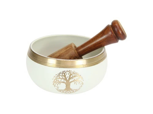10cm White and Gold Tibetan Singing Bowl with Tree of Life Design (Includes Striker)