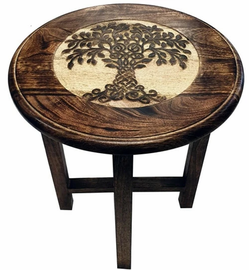 This taller Table would makes for a great feature altar, or crystal / herb display with grid pattern carved in.
