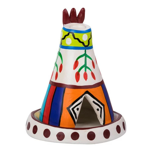Clay Crafted Teepee in several hand painted designs – to hold incense cones where smoke will come out of the top.