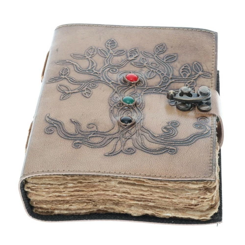 Tree Leather Journal featuring three inset stones – 12cm x 17cm