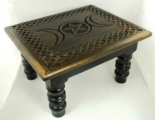 This exquisite altar table is gorgeous, beautifully displaying the Triple Moon symbol of the goddess to make the perfect foundation for your ritual space