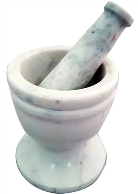 Attractive mortar & pestle crafted of white marble